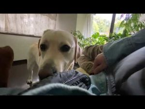 飼い主がお昼寝中ちょっかい出すラブラドール・レトリーバー Labrador Retriever