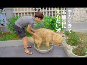 デカすぎてお風呂に入れないゴールデンレトリバー犬!!全く参考にならない犬の洗い方講座