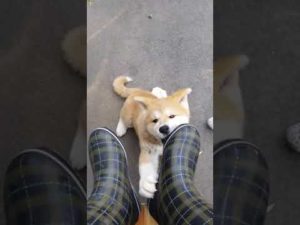 #45 プロテインのシェイカーの音に反応する看板犬 秋田犬 / A mascot dog who reacts to protain shaker sounds / 成犬の柴犬くらいの大きさの秋田犬