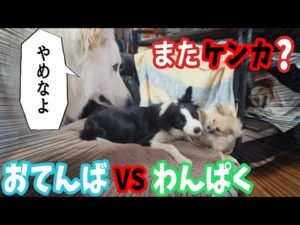 ケンカを止めたいホワイトシェパードとおてんば&わんぱくパピーズ【ボーダーコリー/ポメラニアン】