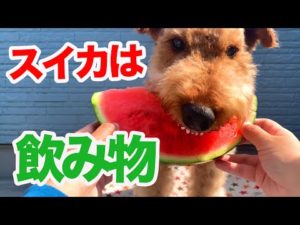 スイカを豪快に食べる犬 MugiVlog07 Airedale Terrier loves watermelons