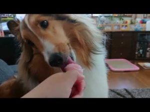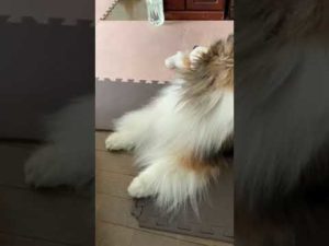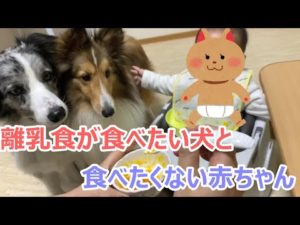 赤ちゃんの離乳食を欲しがる犬【シェルティ】【ボーダーコリー】