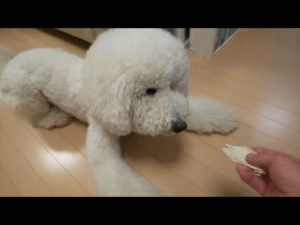 【スタンダードプードル】鶏むね肉の蒸し物を食べている勢いで嫌々ドッグフードを喰らう、ぷぅ🐩主、残りの皮うますぎー【standard poodle】