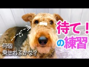 お顔にビスケット何個乗せれる?待ての練習 エアデールテリア MugiVlog12 Airedale Terrier
