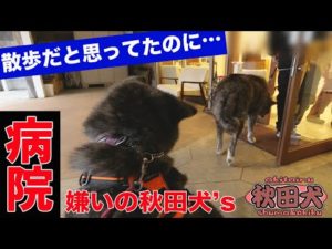 【元保護犬】フィラリア検査の為病院へ!病院嫌いの秋田犬二頭は、鳴くは拒否るは大変です【大型犬】【akita】