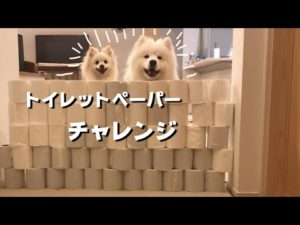 壁に立ち向かうワンコ(物理) サモエドのネモ&mix犬シェリー