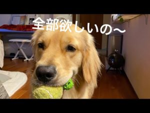 オモチャの奪い合い遊び。ゴールデンレトリバー【9ヶ月】vsダルメシアン