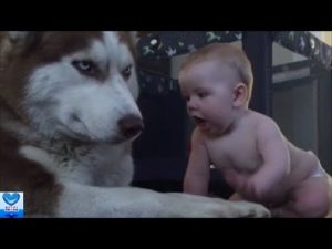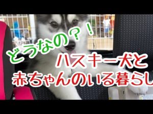 強面なハスキー犬にハイハイで近づく赤ちゃん。その後のとんでもない行動に驚きを隠せない!【感動】