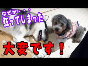 視聴者さんのプレゼントに狂ってしまったハスキー犬とトイプードル