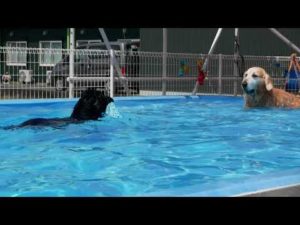 【PESCA犬用プール動画】フラッティのneroちゃんとゴールデンのアレックスくん