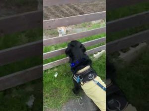 フラットコーテッドレトリバーBECK君 猫との睨み合いに負ける