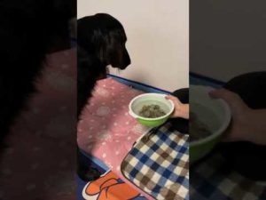 フラットコーテッドレトリバーBECK君 アサリとの睨み合いにも負ける