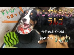 今日のおやつは初めてのスイカ!バーニーズマウンテンドッグラルゴ