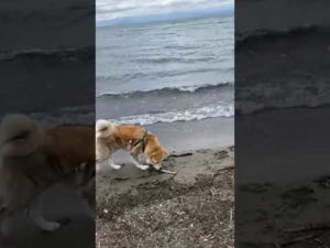 チビのくせに!いっちょまえにちゃんと秋田犬じゃん。らんぷちゃん。