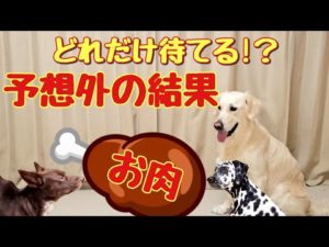 大好物のお肉!どれくらい待てる!?英国ゴールデンレトリバー、ダルメシアン、保護犬