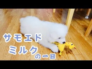 2ヶ月のサモエド「待て」ができる?🍗 サモエドミルク初のしつけ✨