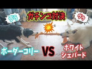 ついに ホワイトシェパード vs ボーダーコリー が勃発しました【力比べ】