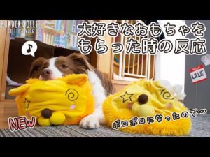 大好きなおもちゃをもらって歓喜するボーダーコリー / Border collie who rejoices by receiving his favorite toy