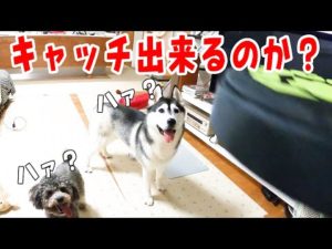 初めてフリスビーをキャッチ?【ハスキー犬はっちゃん 保護犬トイプードル9ちゃん】