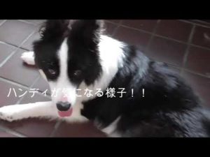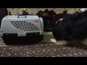 ハウスにこもろうとする新入りを説得するオーストラリアンシェパード🐶