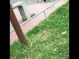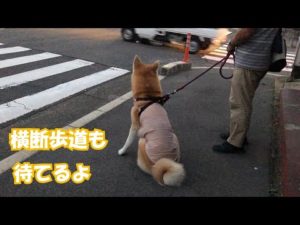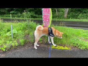 車の多い道路の側も堂々と歩く秋田犬 秋田犬ゆう太 Akita Inu walking proudly on the side of a road with many cars