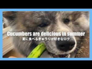 秋田犬 六郎 / 夏に食べるきゅうりが好きなロク – Cucumbers are delicious in summer