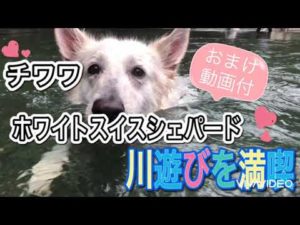 チワワもホワイトスイスシェパードも皆んなで川遊び満喫しました!!