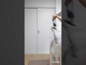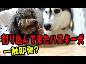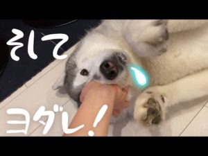 ごはんが落下してネイティブな反応がつい出てしまうシベリアンハスキー の姉