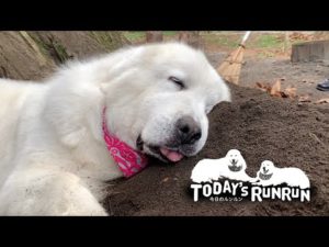 土のベッドでお昼寝をするルンルンです Great Pyrenees グレートピレニーズ