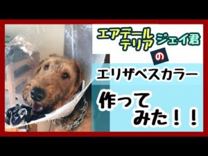 エアデールテリア・ジェイ君、初めてのエリザベスカラーでトラブル続出!!