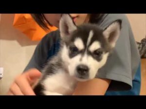 おねえちゃんの抱っこが大好きな赤ちゃんシベリアンハスキーハレくん(生後1ヶ月27日目)