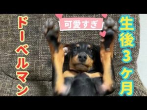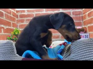 無邪気に遊ぶ生後3ヶ月のドーベルマンの子犬《doberman》《短い動画》