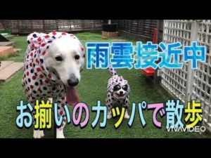 雨雲接近中…ホワイトスイスシェパードとチワワ!お揃いのカッパでお散歩!