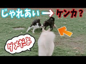 ケンカになる前に仲裁に行ったは良いけど困ってしまうホワイトシェパード【ボーダーコリー】