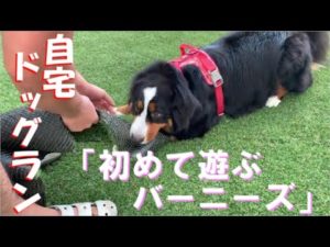 【人工芝DIY】自宅ドッグラン完成!初めて遊ぶバーニーズマウンテンドッグマリブの反応は?