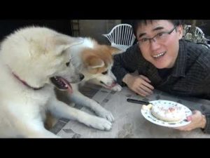 チャンネル登録30万人達成を秋田犬とケーキでお祝いしました!