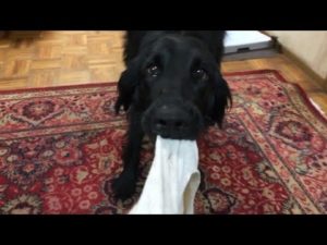 #66 momoとタオルとわたし〜♫のフラットコーテッドレトリバーと引っ張りっこ