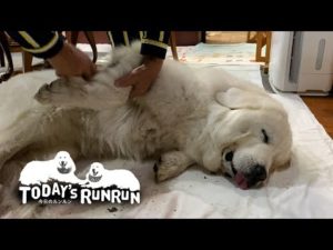 夜のブラッシングは寝たふりをして拒否するルンルンです Great Pyrenees グレートピレニーズ