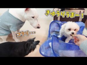 いただきまぁ~す! 🐶ひみつきちなう!#1🐶 (ミニチュアブルテリア チワワ 柴犬 ビションフリーゼ マルチーズ) 2020年10月19日