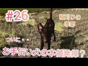 『フラットコーテッドR#26』稲刈りのお手伝いの為 田んぼに連れていかれるフラッティ