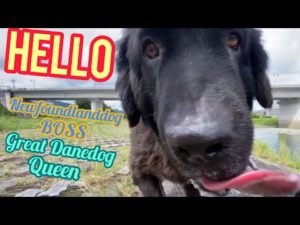 Giantdog BOSS&Queen 大型犬 超大型犬 ニューファンドランド ボス君 グレートデン クィーンちゃん お散歩 河川敷 林道 渡辺ボス dog