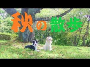 秋の散策路 ゴールデンレトリバーのチャッピーとボーダーコリーのココが秋の御所湖の遊歩道をご案内します。