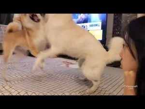 여기 개싸움 났어요. [시베리안허스키(Siberian husky,シベリアンハスキー), 시바견(Shibainu,柴犬),유기견백설]