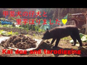 甲斐犬の仔犬と里芋掘り。Kai dog puppy and taro digging【Samurai dog TV】