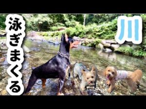 【川遊び】ドーベルマン、ヨークシャテリア、マルプーの楽しい休日