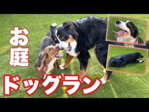 ブリーダーさんのお庭ドッグランで遊ばせてもらうバーニーズマウンテンドッグのベル 大型犬1歳1ヶ月