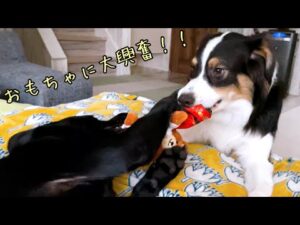 pecobox来たよ〜!おもちゃに大興奮のラブラドール姉とオーストラリアンシェパード弟