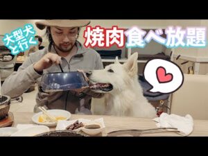 50kgのホワイトシェパードとボーダーコリーで焼肉食べ放題に行ったらめちゃ幸せそうだったw