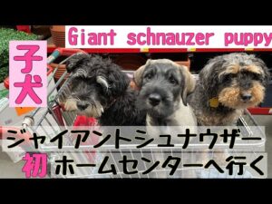 ジャイアントシュナウザー子犬、ホームセンターデビュー!Giant schnauzer puppy first time at Bunnings
