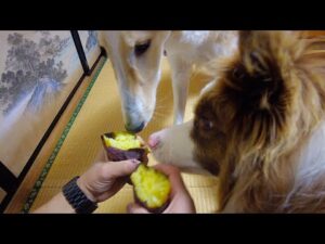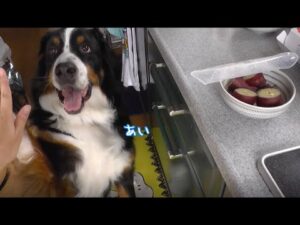 いつにもなく上手にコマンドをこなしてサツマイモをゲットしたバーニーズマウンテンドッグのギン